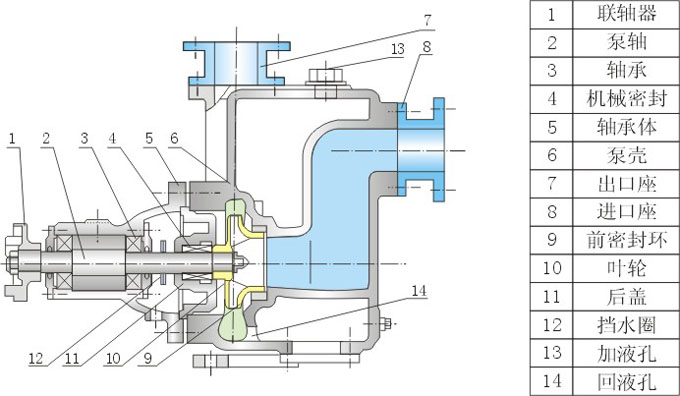 3、为使泵体内能够保持一定的储存液,以达到较好的自吸能力和防止机械密封的干磨擦,必须使泵的进口高于泵轴的中心线。